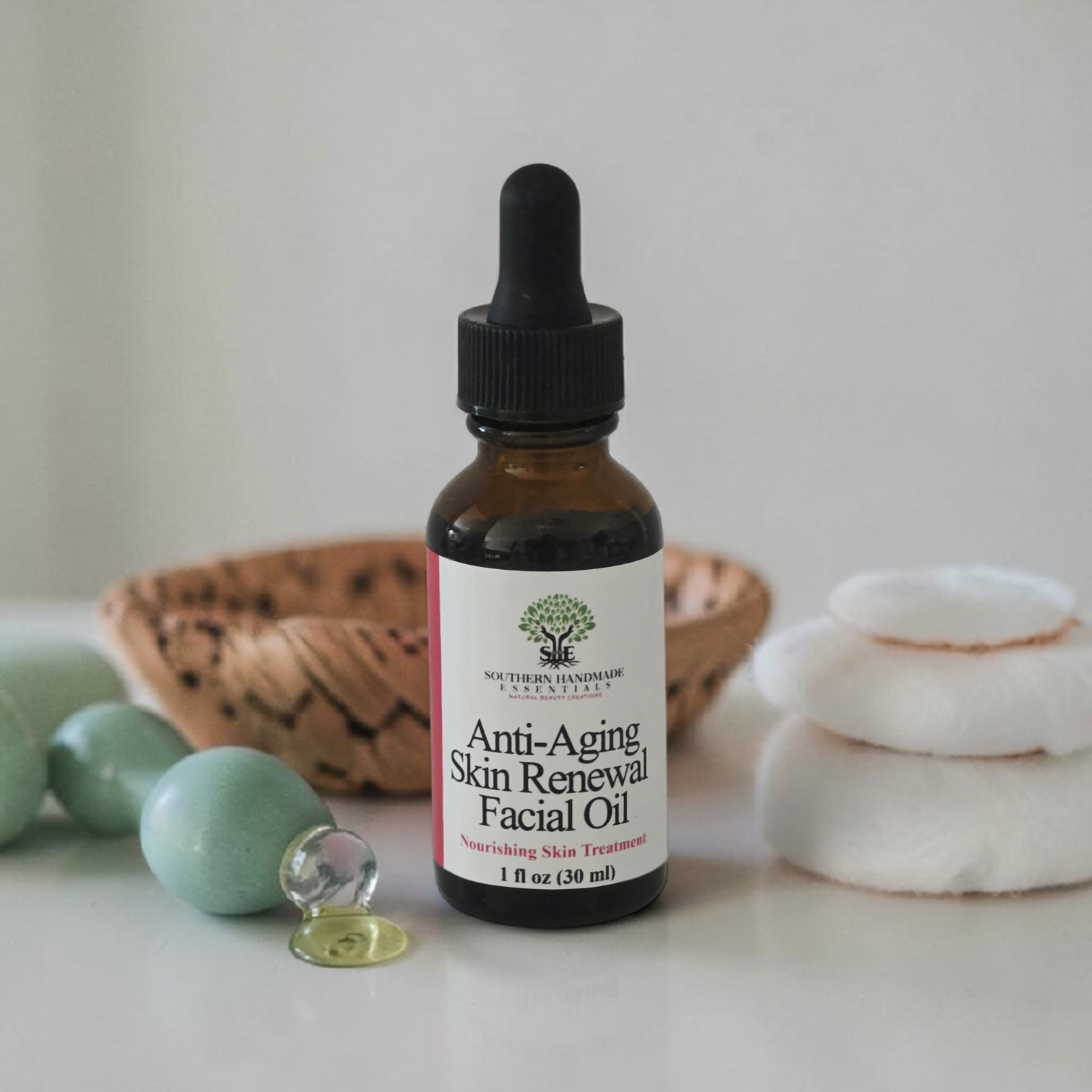 Discover the secret to visibly younger-looking skin with our luxurious Anti-Aging Skin Renewal Facial Oil. This powerful, yet lightweight and fast-absorbing formula is a handcrafted blend of organic botanical oils and skin-loving vitamins. Designed to deeply nourish, hydrate, and protect, this oil works with your skin to help restore its natural elasticity, minimize fine lines, and leave you with a soft, supple, and radiant complexion. Experience the silky, non-greasy texture that melts effortlessly into your skin, delivering essential nutrients that support your skin’s health and resilience.